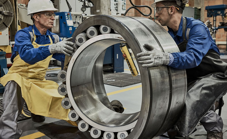 滚子和滚道接触处修正的接触线可以减少应力集中。SKF圆锥滚子轴承可以承受大的径向载荷和轴向载荷。由于圆锥滚子轴承只能传递单向轴向载荷,因此,为传递相反方向的轴向载荷就需要另一个与之对称安装的圆锥滚子轴承。